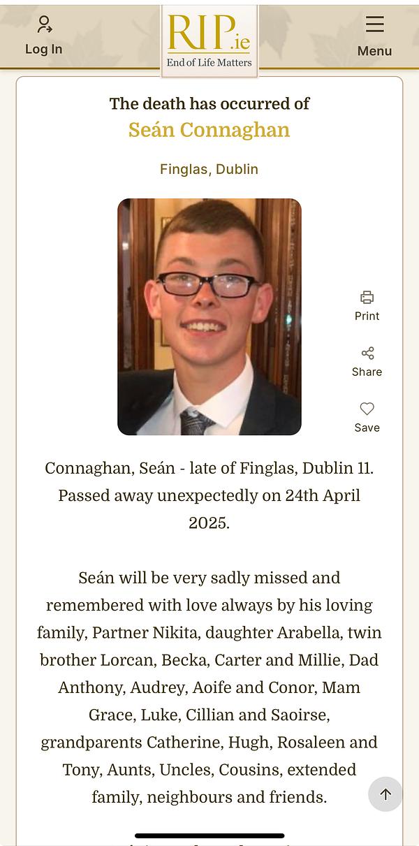 It is with great sadness we share the funeral details of Sean Connaghan, son of long time member Anthony.
